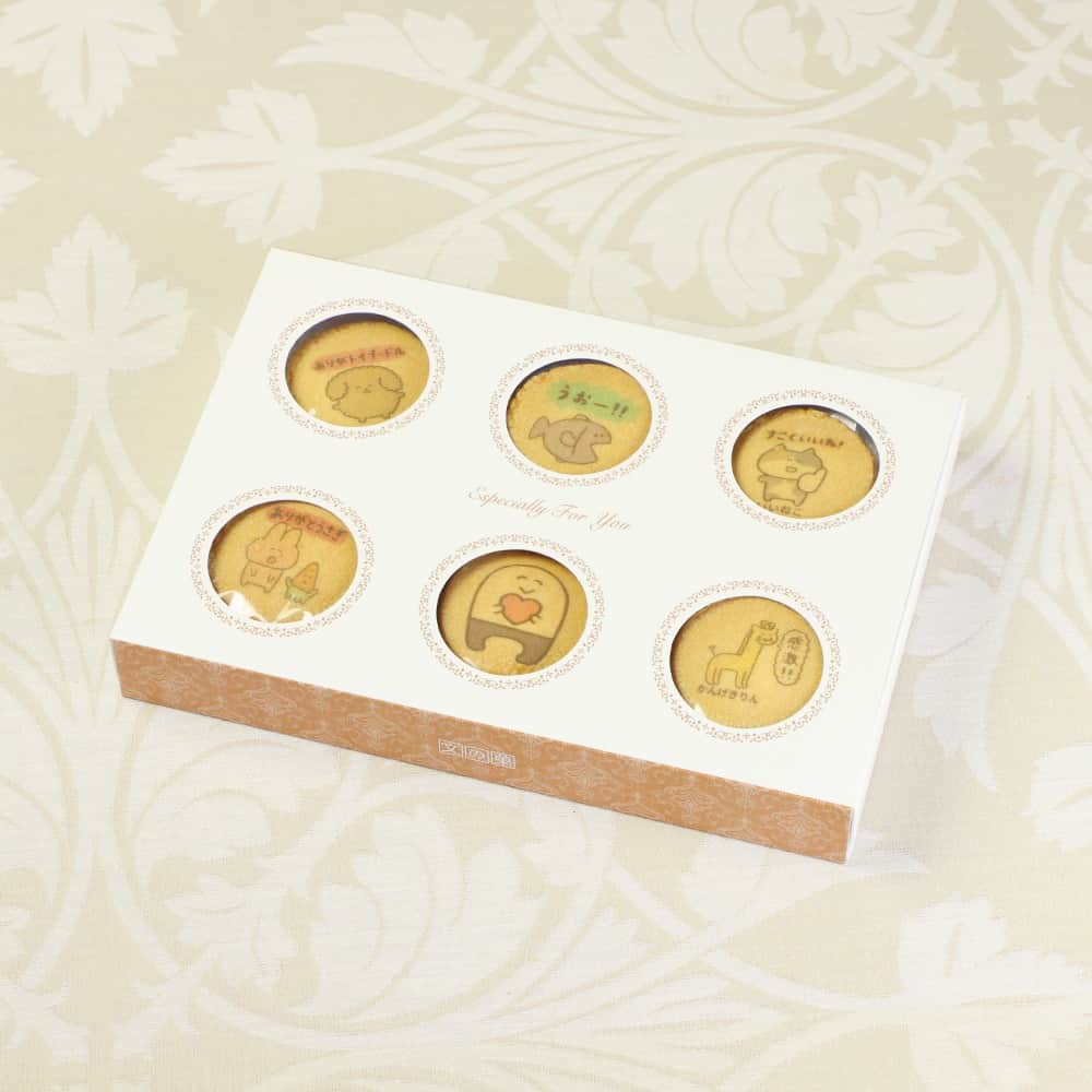 ※定型デザインでの6枚入りとなります。 ※文字や絵柄は食用の着色料ですので、そのまま食べられます。 ※こちらの商品は会津若松市の製造工房より出荷いたします。 ※外箱・包装のデザインが変更になる場合もございます。 ※化粧箱入りでお届けいたします。ギフト仕様の状態でお届けいたしますので、追加の包装・ラッピングご要望はご容赦下さい。 ※手作りのため、クッキーの焼き色濃くなる場合があります。 |