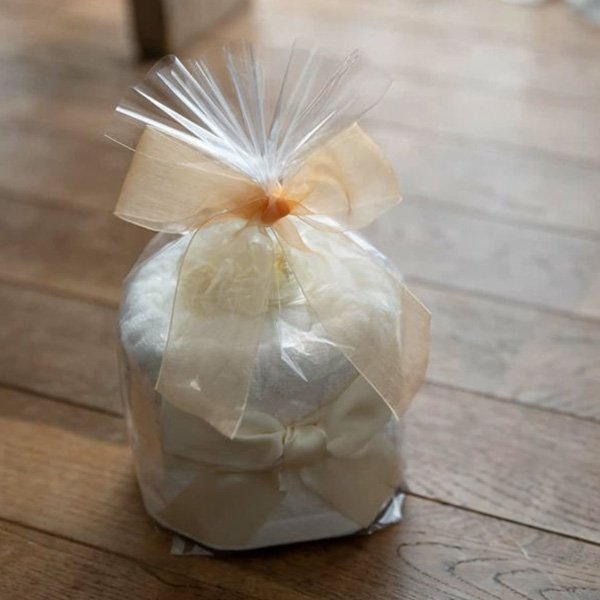 直接先様にご持参いただく場合に便利な底板付きのやや厚手の袋です。2種類のサイズを用意しており、ご注文に合わせてお入れします。