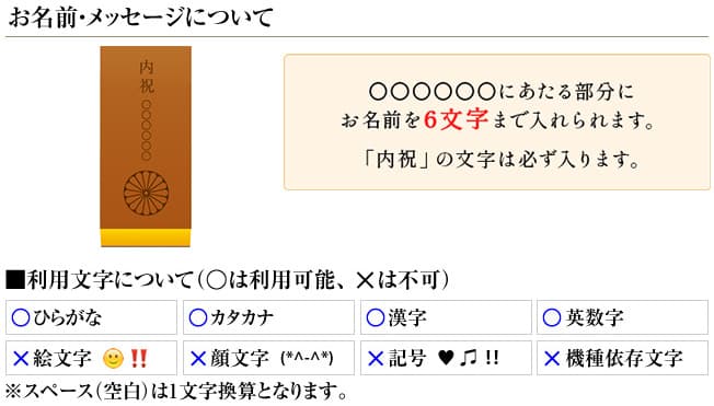 ※お名前によっては、印字が難しい場合がございますのでご相談ください。