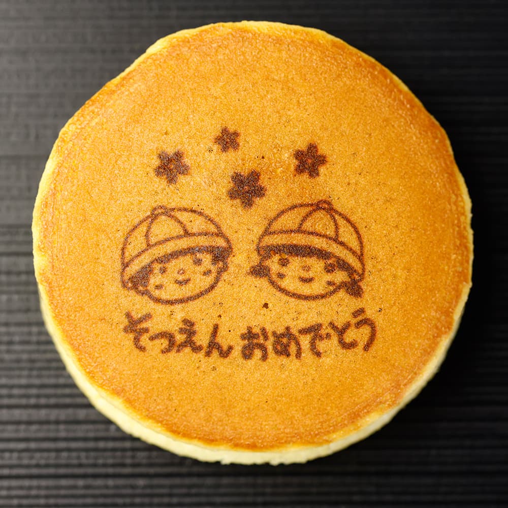 名前やオリジナルメッセージ、お好きな文字、アルファベット、手書きの絵、イラスト、お子さんの書いた絵、会社のロゴなどが自由に入れられるどら焼き・カステラ・バウムクーヘン・チーズタルトです。