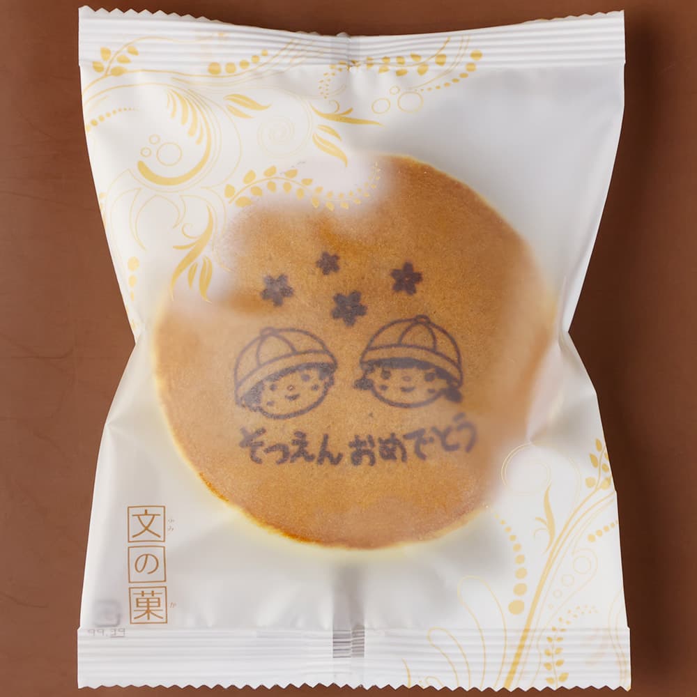 ご卒園のお祝い・記念品に。かわいい卒園イラストが入ったどら焼きは、たくさんの方への配布にもおすすめです。