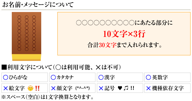 ※ひらがな、カタカナ、漢字、英数字が印刷できます。※スペース(空白)は1文字に数えます。