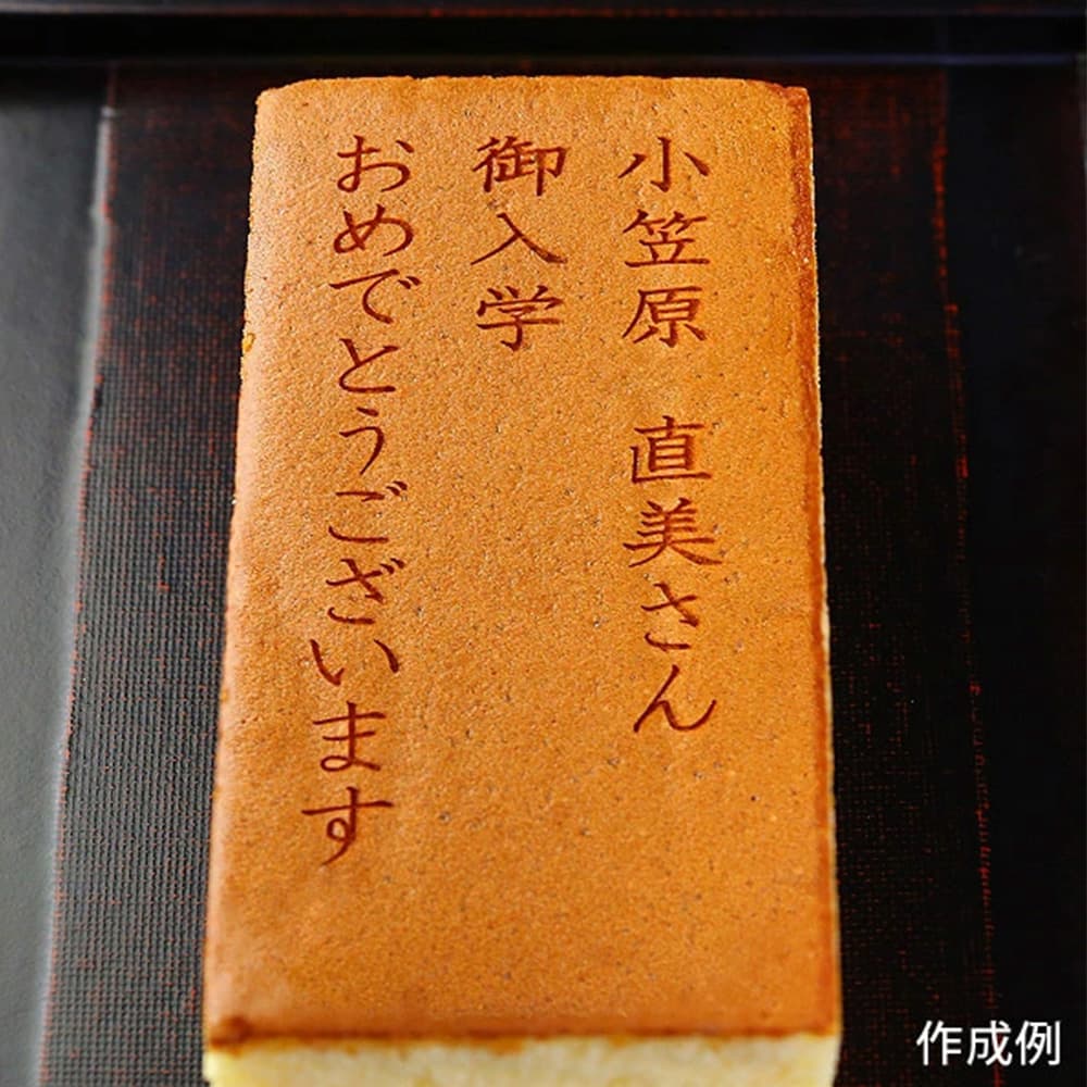 ご購入頂いた商品:入学祝いの名入れ・オリジナルメッセージカステラ(0.6号/1本入り)