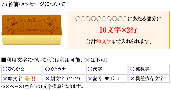※カステラに入れるメッセージは、ご注文1回につき1種類でお願いいたします。