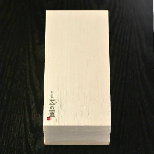 木箱のふたには「世田谷 文の菓」のロゴマーク入り。