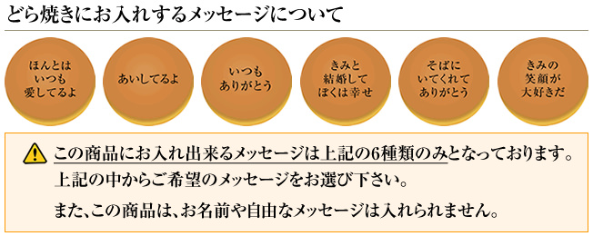 こちらの「愛妻の日の文字入りどら焼き「もじどら」(5個入り) 化粧箱 短納期」を、メッセージギフトにご利用ください♪