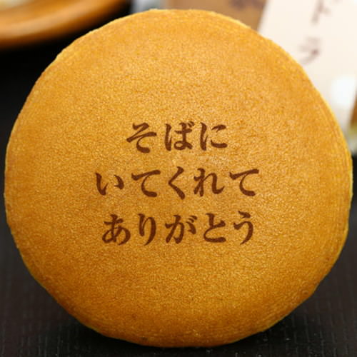 誕生日にむけて、「どら焼き」3個でオリジナルメッセージ入りを購入しました。