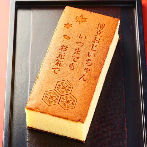 お名前や、メッセージが入れられるカステラは、「おいしさ」と「気持ち」を同時にお届けできる特別な贈り物。大切なおじい様、おばあ様への贈り物に、お名前と感謝のメッセージが印刷された美味しいカステラはいかがでしょうか。