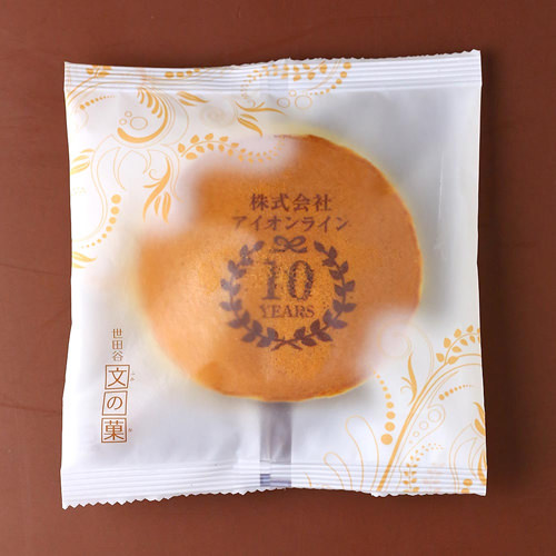 社名や団体名、年数、メッセージをお入れできる 周年記念のどら焼きです。