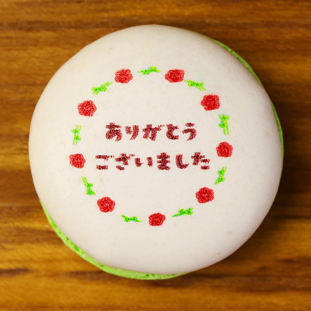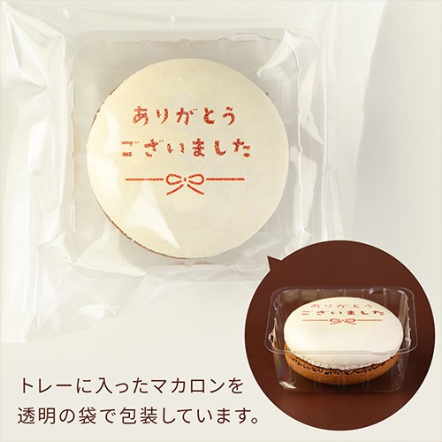 退職、転勤、習い事の修了、ホームステイ、様々な場面でお世話になった方へのお礼のご挨拶に。マカロンに「ありがとうございました」のメッセージを入れてお届けいたします。