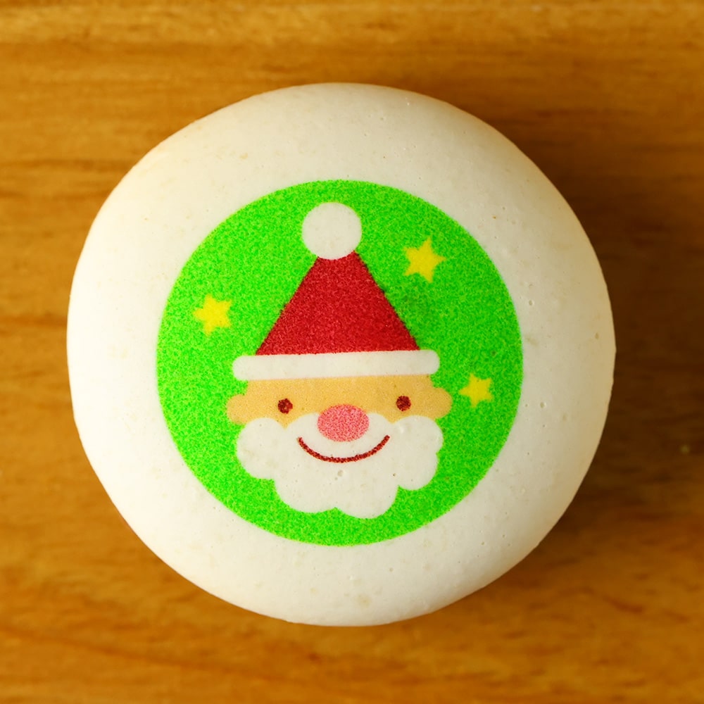 サンタクロースやクリスマスツリーなどのかわいいイラストが入った、カラフルなマカロンです。クリスマスの贈り物やパーティのデザート、クリスマス会や子供会などのイベントのお土産に。