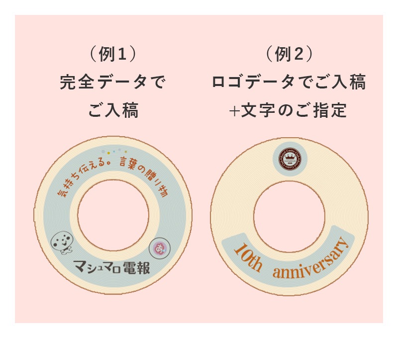 ロゴのみご入稿いただき、別途入れる文字をご指定いただくと、当店で文字入れをいたします。(例2)